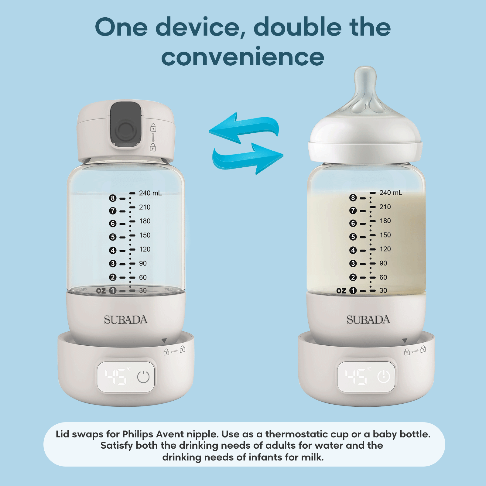 ▪ The bottle mouth can be replaced with a new Avent nipple for outdoor use.